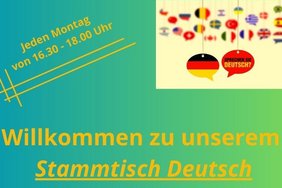 Herzlich willkommen! Unser Stammtisch ist offen für alle, die ihre Sprachkenntnisse vertiefen und sich in entspannter Atmosphäre über diverse Themen unterhalten möchten. In der Cafeteria der vhs können Menschen zusammenkommen, sich austauschen und dabei ihre Sprachkenntnisse verbessern. Wir haben alle ein Ziel: sprechen, sprechen, sprechen - über alles, was uns interessiert und wichtig für unser Leben in Deutschland ist. Teilnehmen können alle Interessierten, die schon länger Deutsch lernen oder auch gerade erst am Anfang stehen. Wenn Sie neue Kontakte knüpfen und Ihre Deutschkenntnisse verbessern wollen, sind Sie hier genau richtig.